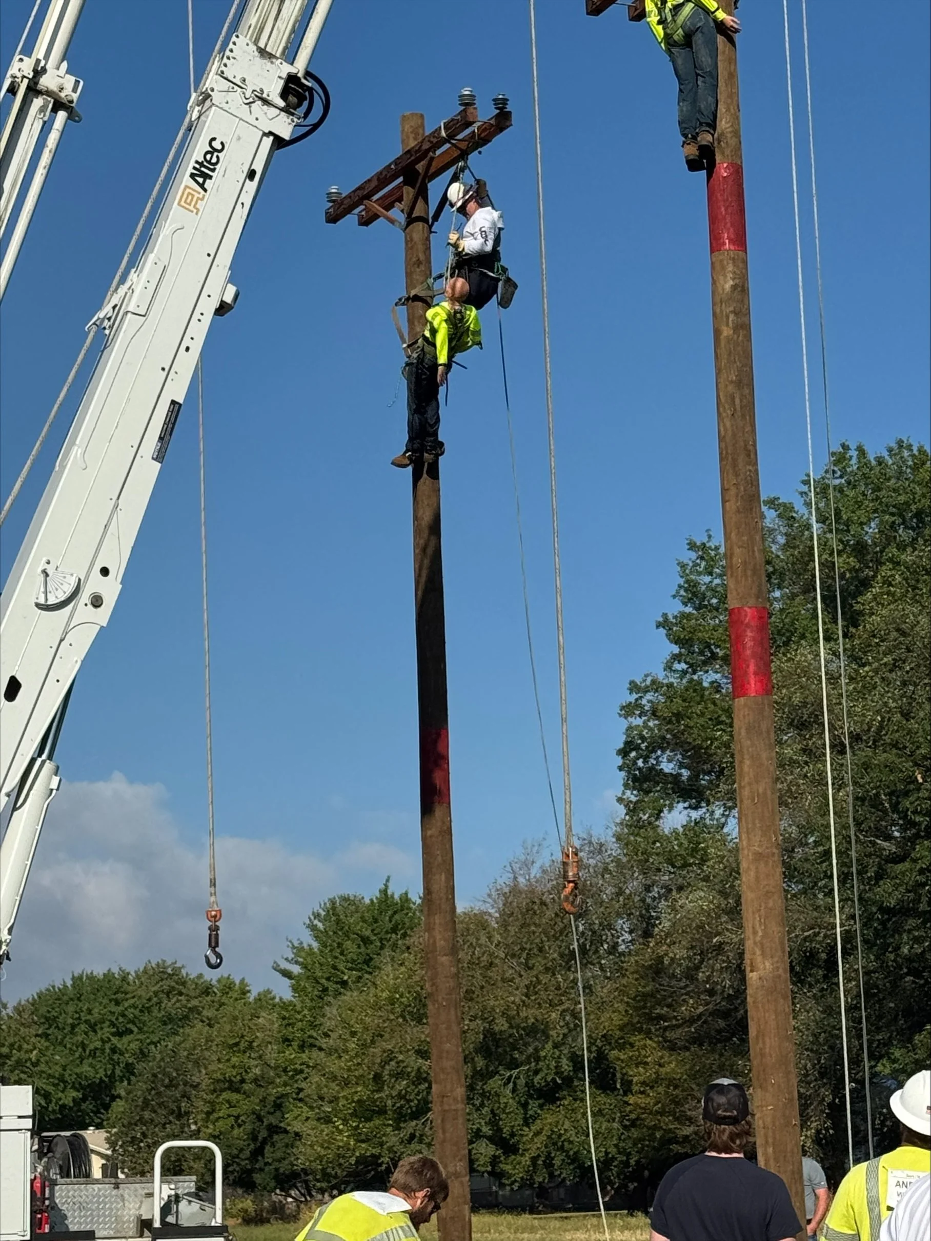 The day wrapped up with lineworkers competing head-to-head in the 40’ Transition Climb, which tested agility, endurance, and safe climbing practices. “The 40-foot was a high-energy and exciting competition this year,” said Barb Harmon, Director of Human Capital at Wolf Line. “But my favorite part was how it truly reinforced the camaraderie of linemen.”